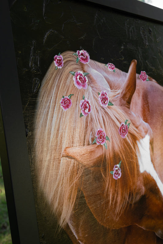 “Scarlett Adorned in Roses” - Equine Mixed Media Art