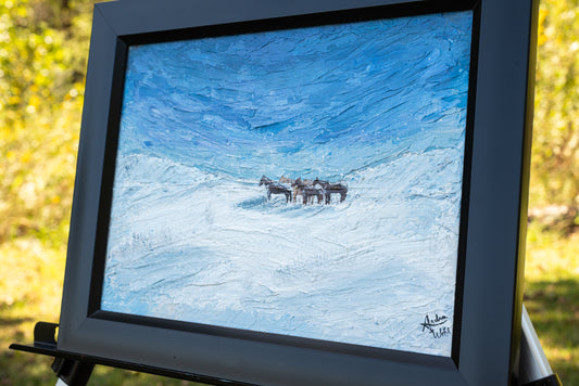 “Snow Storm on the Plains” - Equine Mixed Media Artwork